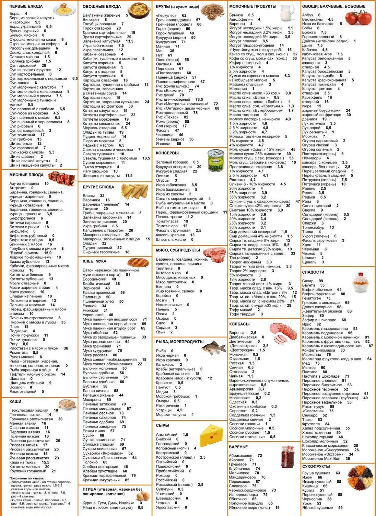 - Pirmieji kursai. Didžiausia žirnių sriubos vertė taškais, mažiausia - mėsos ir vištienos sultinio. Pageidaujami pirmieji patiekalai yra mėsos ir grybų šerniena, kopūstų sriuba iš rūgštynių, švieži ir marinuoti kopūstai, barščiai, okroshka mėsa ir kefyras arba kvasas, pieno sriubos su kopūstais, ryžiai, makaronai, moliūgo. Šių patiekalų kaina siekia iki septynių balų. Didžiausia pirmųjų patiekalų „kaina“ yra nuo penkiolikos iki dvidešimties punktų už grybų, pomidorų ir žirnių sriubas.