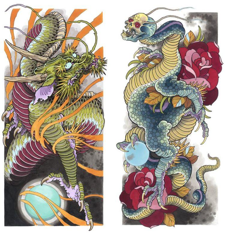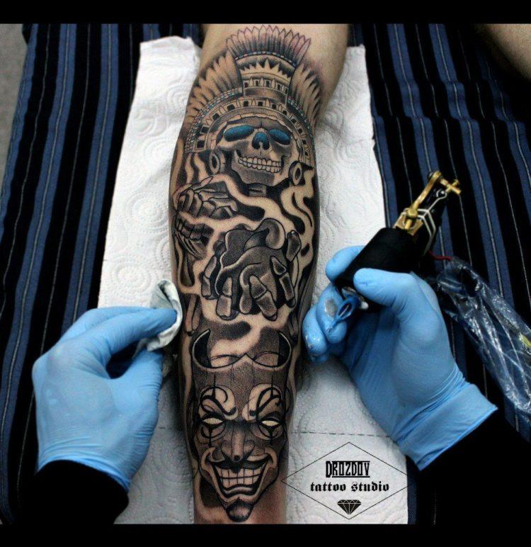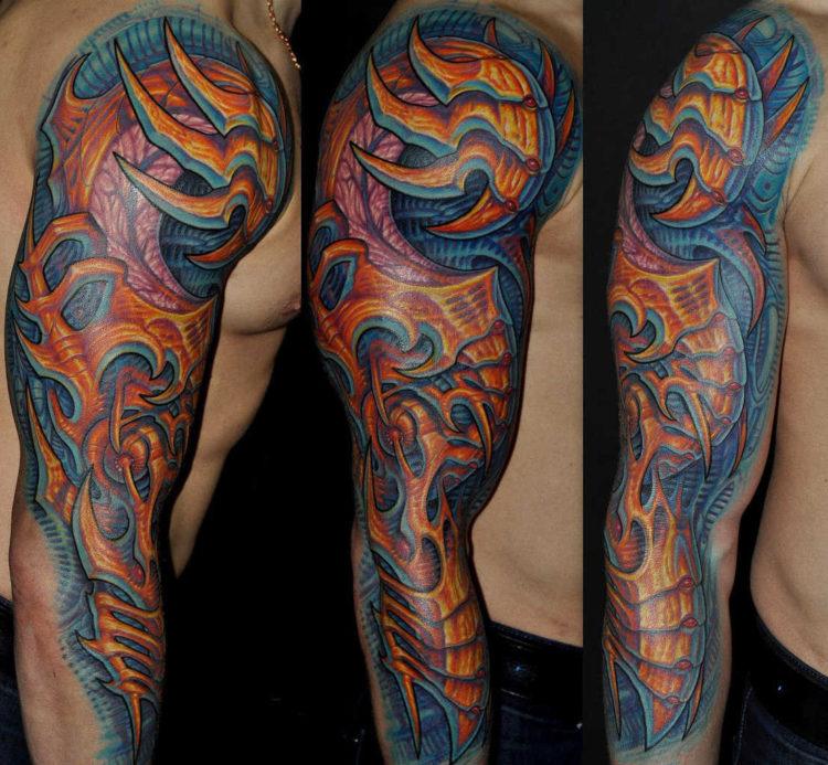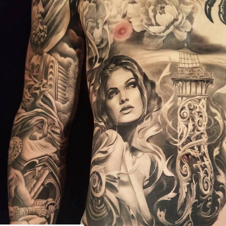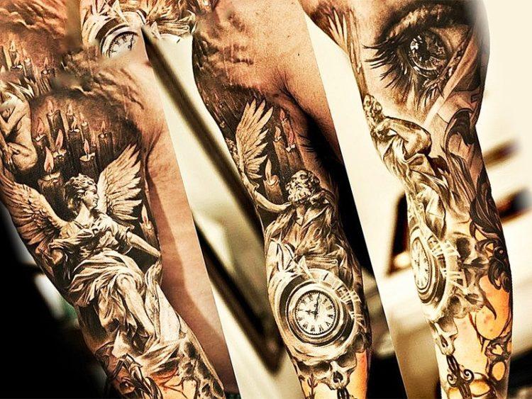 Brėžiniai, naudojami tatuiruotėms su visa ranka, vyrams ir moterims, yra įvairūs. Paklausa yra gėlių motyvais. Ir jei tokio stiliaus mergaičių tatuiruotė, turinti visą ranką, turi tik gėlių atspaudą, tada vyrų tatuiruotėse gėlių ornamentas dažnai derinamas su laikrodžio nuotrauka. Pilnos rankos tatuiruotėse vyrams dažnai būna kaukolės atvaizdai.