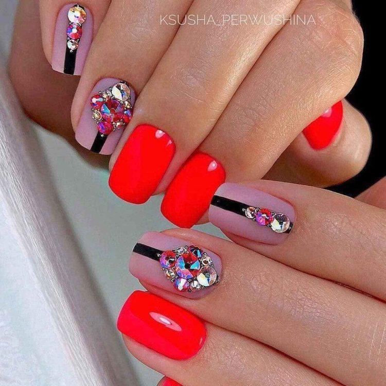 Toliau pateiktas madingas manikiūras su rhinestones, kurio nuotrauka tikrai suteiks idėjų, kaip sukurti savo įvaizdį. Išmoksite tai, kas inkrustuota rhinestones ant nagų, taip pat išsirinksite jums tinkantį juodą, geltoną ar raudoną manikiūrą su rhinestones.