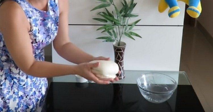 - Apvyniokite rutulį aplink stalviršį, suteikdami jam apvalią formą. Uždenkite ruošinius lipnia plėvele, leiskite jiems „pailsėti 10 minučių“.