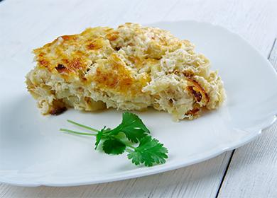 Žuvies paplotėlis kaip darželyje. Svarbios maisto gaminimo paslaptys. Žingsnis po žingsnio skanių suflių iš žuvies receptai, žuvies pyragas lėtai viryklėje ir užkepėlė su ryžiais pomidorų pasta.
