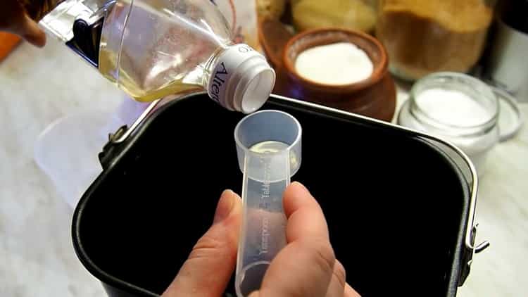- Geriau vartoti dezodoruotą rafinuotą aliejų. Į vandenį supilkite 1,5 šaukštelio druskos. Vartokite reguliariai nejodintą druską. Galite naudotis jūra. Į duonos keptuvę įdėkite 2,5 šaukšto granuliuoto cukraus.