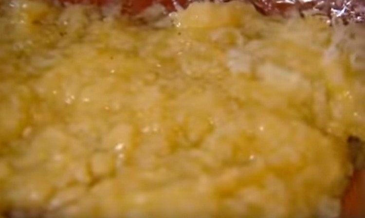 - Ant viršaus uždenkite žuvį plonu gremolato sluoksniu.