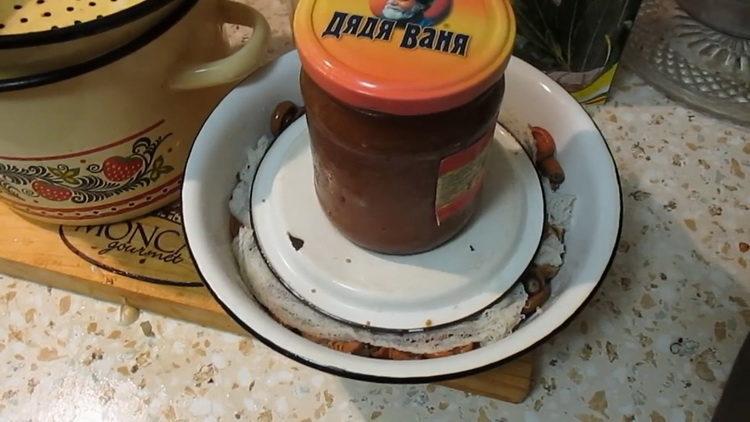 - Po to uždėkite varškės dangtelį ir ant viršaus uždėkite viso litro stiklainį, kuris veiks kaip spauda. Įdėkite grybus į šaldytuvą. Jie bus sūdyti 3-4 savaites, po to patiekalas bus paruoštas. Po to sūdyti grybai gali būti laikomi šaldytuve dar 2–3 mėnesius. Nepaprastas apetitas!