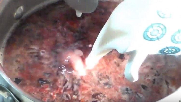 - Supilkite ingredientus vandeniu, įpilkite 350–400 g cukraus ir išmaišykite.