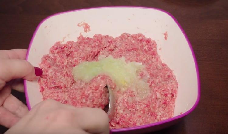 - Mes siunčiame svogūną ir česnaką į maltą mėsą ir gerai sumaišome.