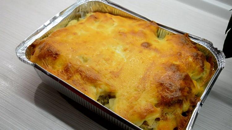 - Išimkite keptuvę iš orkaitės, ant viršaus pabarstykite tarkuoto parmezano ir vėl padėkite į orkaitę 20 minučių.