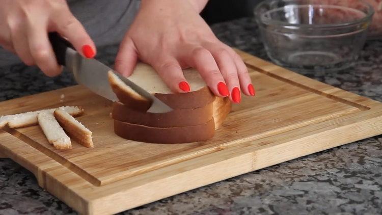 - Baltą duoną supjaustykite, supjaustydami pluta.