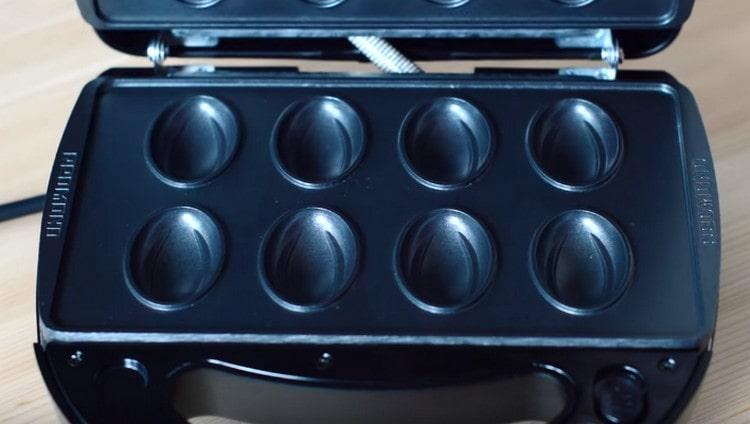 - Prieš pradėdami kepti, turite paruošti lazdyno formą darbui. Gerai pašildykite pelėsį pagal naudojimo instrukcijas. Jei turite senesnę formą ar kepimo indą ant dujinės viryklės, palaukite pakankamai laiko, kol ji gerai sudegs. Prieš kepant, tokias formas būtina vieną kartą sutepti augaliniu aliejumi, kitaip gali sulipti pirmoji riešutų partija. Jei tai yra naujas pavyzdys su teflonu arba nelipnia danga, tai nėra būtina.