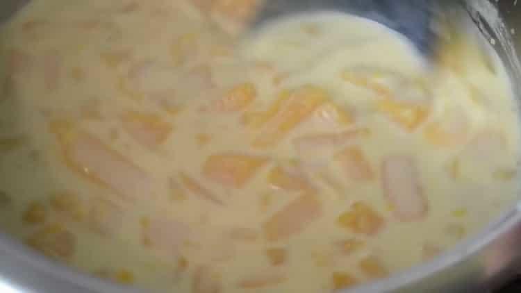 - Supilkite sorą verdančiu vandeniu ir palikite porą minučių. Tada mes jį nuplauname. Į keptuvę supilkite pieną ir užvirkite.