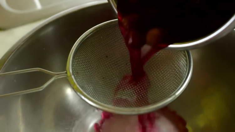 - Mes sutriname vynuoges su trupinimu ir filtruojame paruoštas sultis per minkštą sietą.