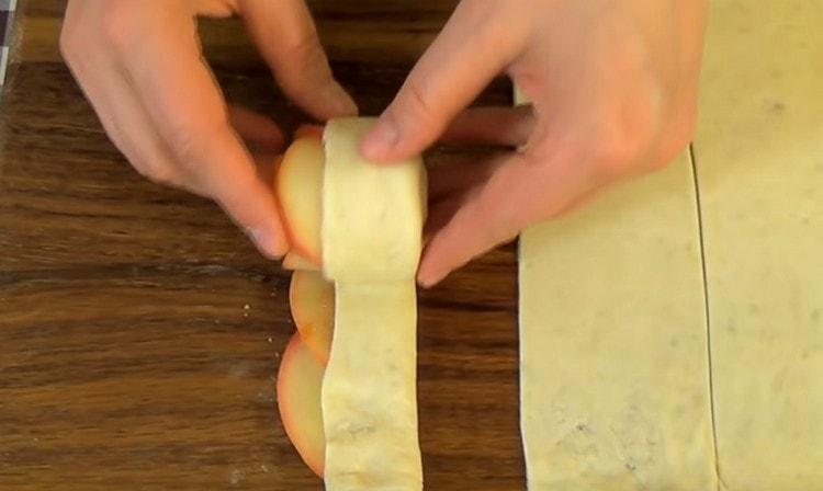 - Kiekvieną juostelę sutepkite tirpintu sviestu.