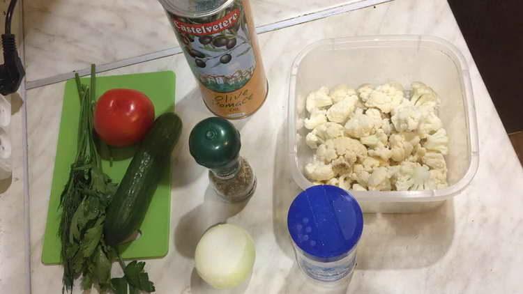 - Pirmiausia reikia išvirti žiedinius kopūstus. Norėdami tai padaryti, atskirkite 300-400 g žiedynų nuo sveikų kopūstų.