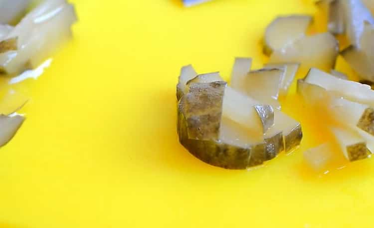 - Pjaustykite pusę svogūno mažais kubeliais.