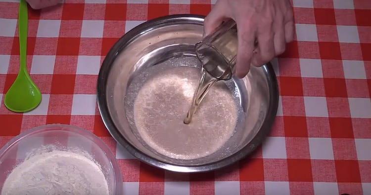 - Pasibaigus reikiamam laikui, į mielių ir kefyro dubenį įpilkite ½ šaukštelio. druskos ir 120 ml augalinio aliejaus be kvapo. Jei naudosite kvapnųjį aliejų, jis gali suteikti nemalonų kartaus skonio.
