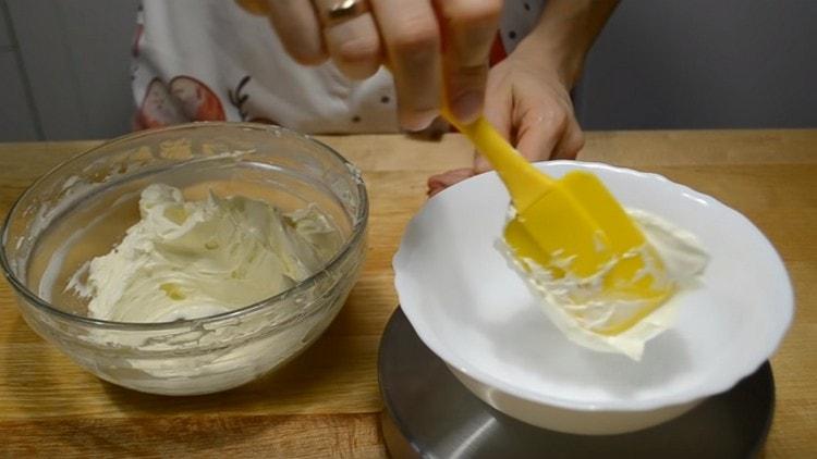 - Gautą kremą padalinkite į 2 lygias porcijas.