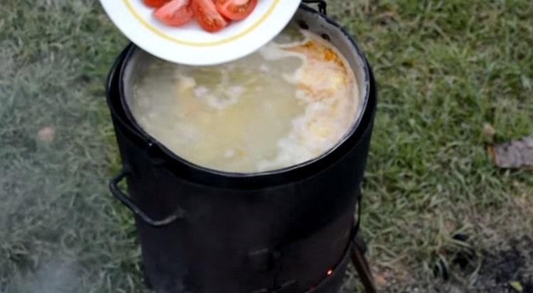 - Dabar reikia pridėti patiekalo, jei manote, kad druskos mažai, įmeskite porą lauro lapų, galite turėti šiek tiek karštų pipirų. Kad ausis būtų skanesnė, turėtumėte šiek tiek pastebimą rūgštingumą, galite pridėti smulkiai supjaustytų šviežių pomidorų ir leisti virti porą minučių.
