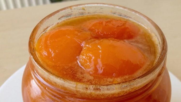 - Abrikosus vėl užviriname, nukeliame nuo ugnies ir supilame į sterilizuotą stiklainį.
