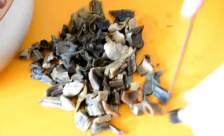 - Šiai sriubai gaminti galite naudoti bet kuriuos valgomus miško grybus. Į gilų dubenį sudėkite 70–80 g džiovintų grybų, nuplaukite po tekančiu vandeniu ir po to maždaug 30 minučių užpilkite verdančiu vandeniu. Mirkymo laikas priklauso nuo to, kiek laiko jūs saugojote grybus. Jei kelios savaitės, pakanka 5 minučių, jei šeši mėnesiai ar daugiau - 40–60 minučių.