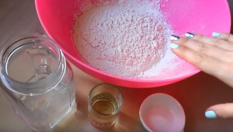 - Pirmiausia gerai išsijokite miltus. Bus gerai, jei jį padažysite du ar tris kartus. Į nedidelį dubenį supilkite miltus.