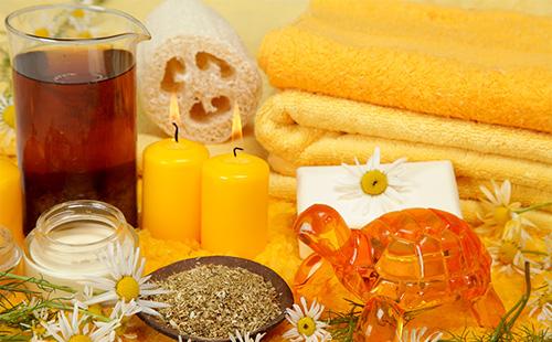| Su varnalėšų aliejumi | - 40 g ramunėlių; - 10 g varnalėšos šaknies; - 0,5 l verdančio vandens; - 30 ml varnalėšų aliejaus; - 0,5 citrinos (sultys) | 30 | 2 |