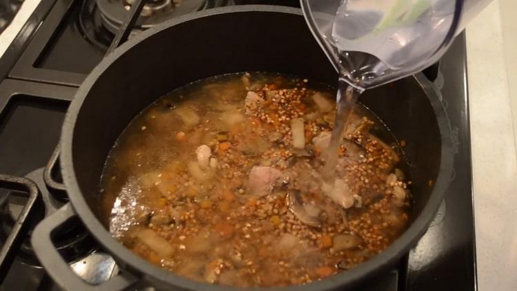 - Turnați acolo 850-1000 ml apă îmbuteliată. Este important ca lichidul să acopere terciul de aproximativ doi centimetri.