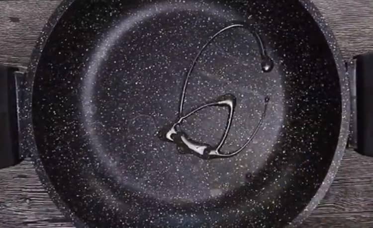 - Turnați câteva linguri de ulei de măsline într-o tigaie adâncă (puteți lua chiar și o tocană) și puneți-o la foc mediu.