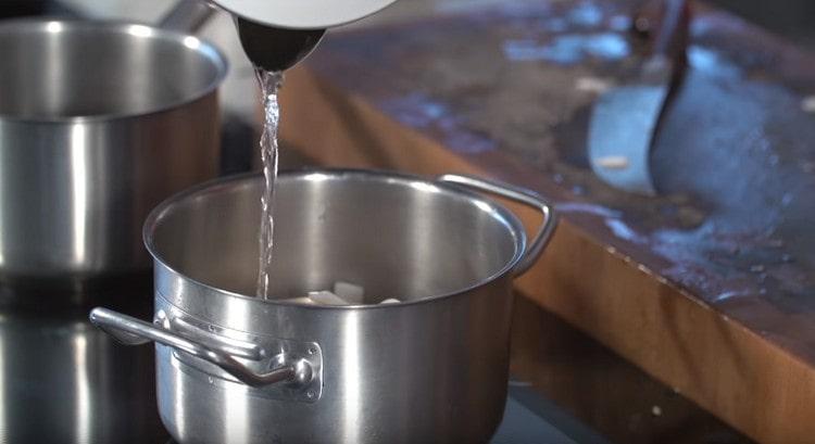 - Turnați acolo 50 ml de apă.