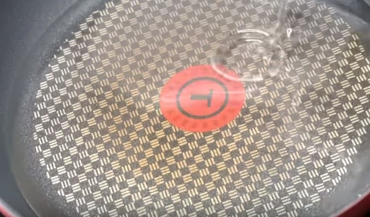 - Se toarnă 250 g ulei vegetal în tigaie și se încălzește bine.