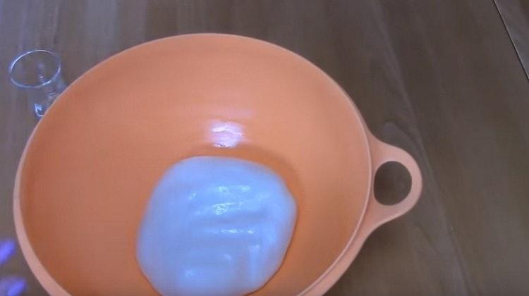 - Când aluatul este frământat, se toarnă 1 lingură. l. Uleiul de floarea soarelui într-un recipient adânc, lubrifiați-l, acoperiți restul de aluat cu uleiul rămas și puneți-l într-un recipient uns. Acoperiți cu un capac și puneți la foc să se ridice timp de 40-45 de minute.