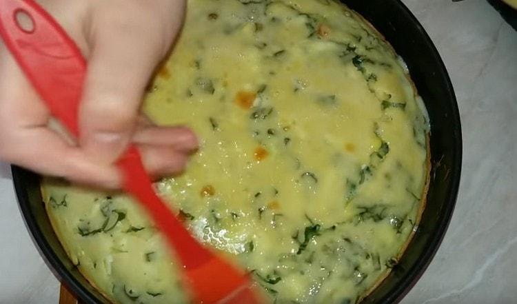 - Apoi umpleți aluatul rămas. Nivel la suprafață. Puteți agita forma un pic, astfel încât totul să fie distribuit uniform.